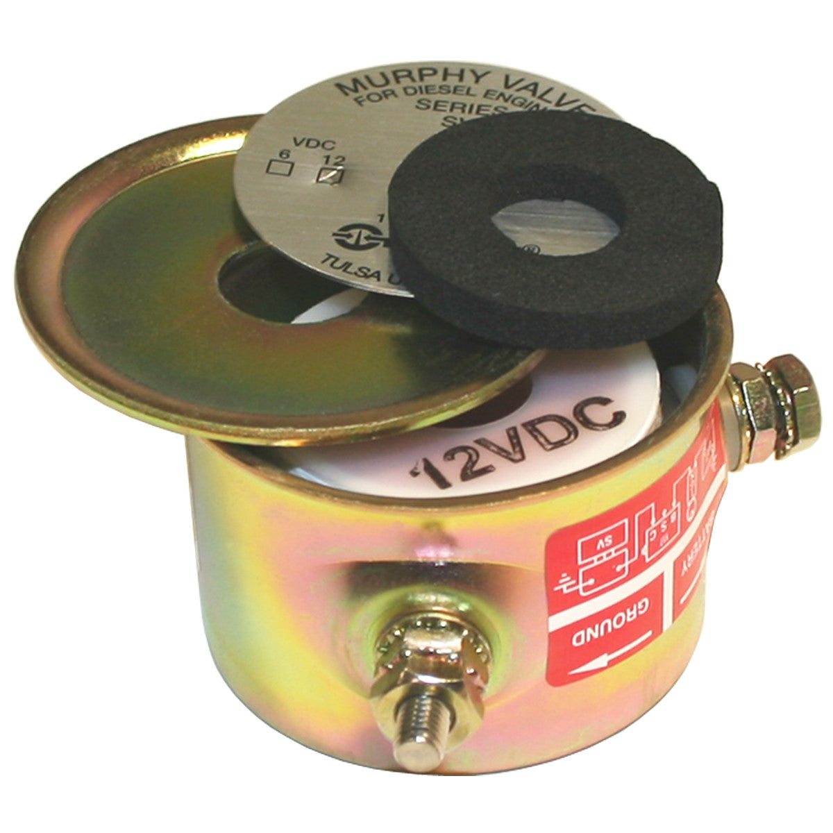 Replacement Coil Assembly for the SV-12 Diesel Fuel Shutoff Valve. This 12-volt kit contains the entire coil body, with rubber gasket, lid and Murphy nameplate. The kit does not contain the screw or the valve assembly.